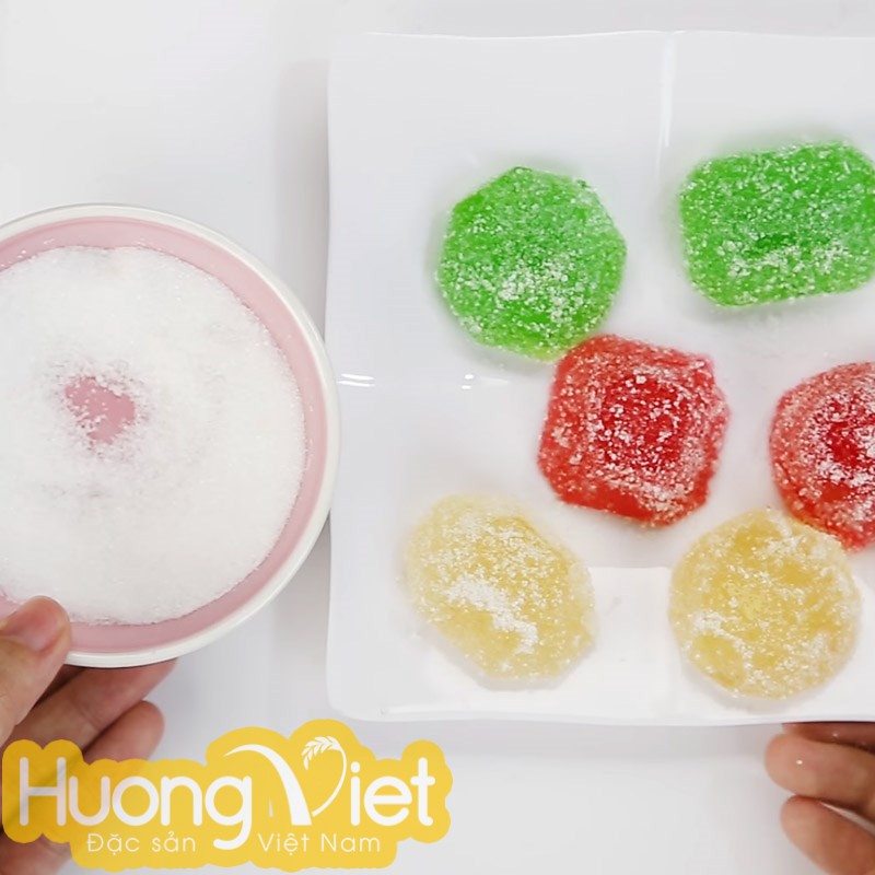 - Bước 4: Rải đều đường hạt lên tấm giấy nến, tách từng miếng kẹo cao su đã đông và lăn đều các mặt lên đường hạt.