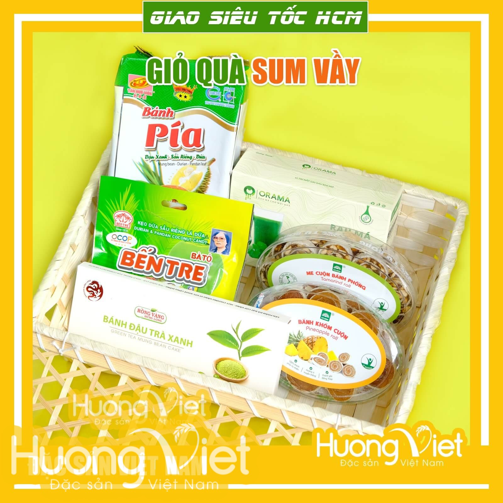 Tết Đoàn viên là phải sum vầy, nếu chưa biết Trung thu mua gì làm quà thì giỏ quà sum vậy rất hợp lý. Sản phẩm là giỏ quả đậm chất miền Tây, mộc mạc và giản dị với những đặc sản của vùng miền. Trong giỏ quà bao gồm bánh pía lá dứa sầu riêng, bánh đậu xanh, kẹo dừa, bột rau má, mứt me cuộn phồng tôm, mứt khóm cuộn… Tất cả các món đều đảm bảo chất lượng, đóng gói đẹp rất thích hợp làm quà Trung thu.